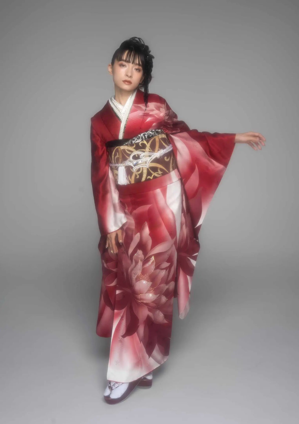 【振袖ネットレンタル: 真紅と黒の組み合わせ】魅惑のゴシックの世界/FL-B106