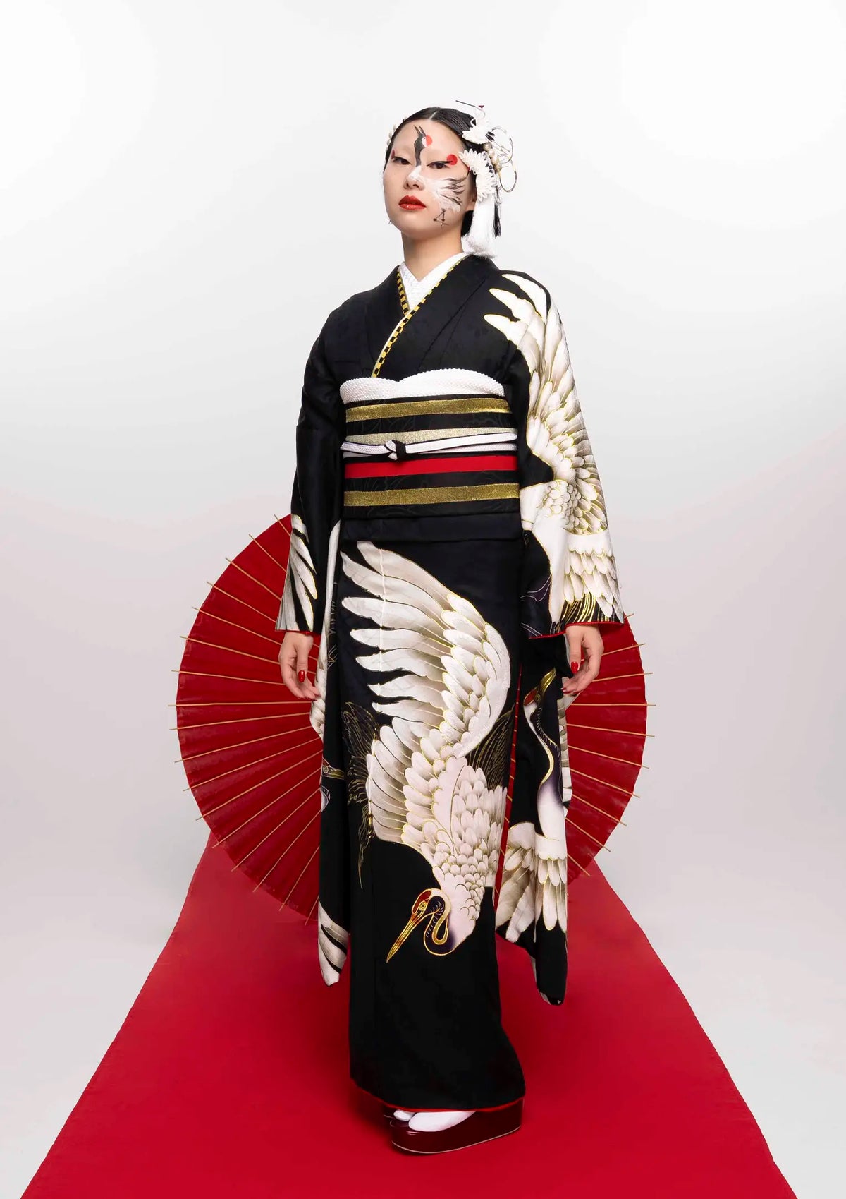 【振袖ネットレンタル】鶴が舞う黒/KH-604