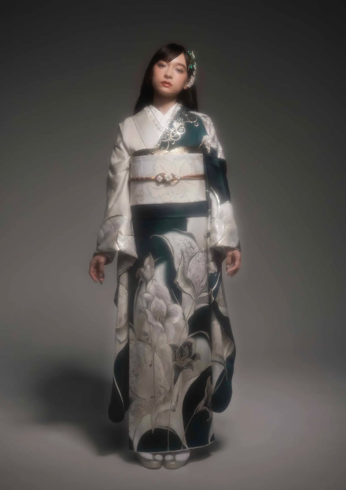 【振袖ネットレンタル】百合が煌めく深緑/KH-606