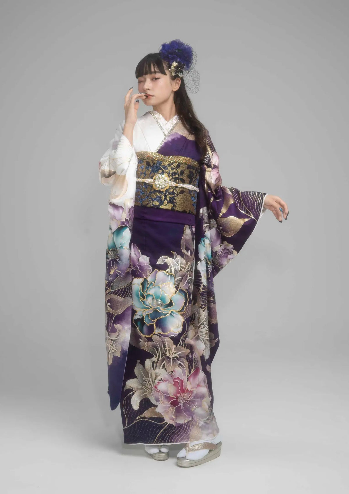 【振袖ネットレンタル】牡丹と百合が魅惑的な紫/KH-619