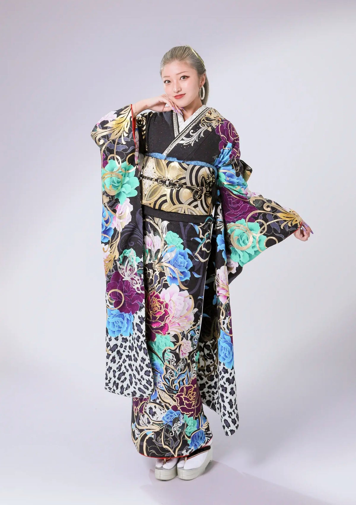 【振袖ネットレンタル:豹柄に華】一際目立つデザイン/C-201