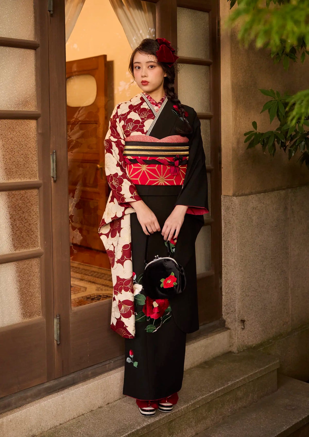 【振袖ネットレンタル:大正浪漫の香り】椿や梅を和洋折衷に魅せる/KH-609