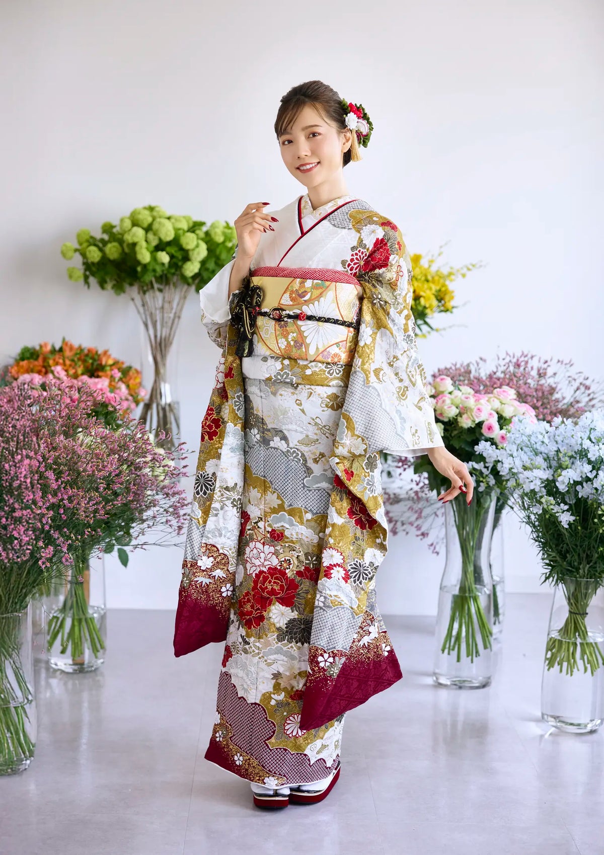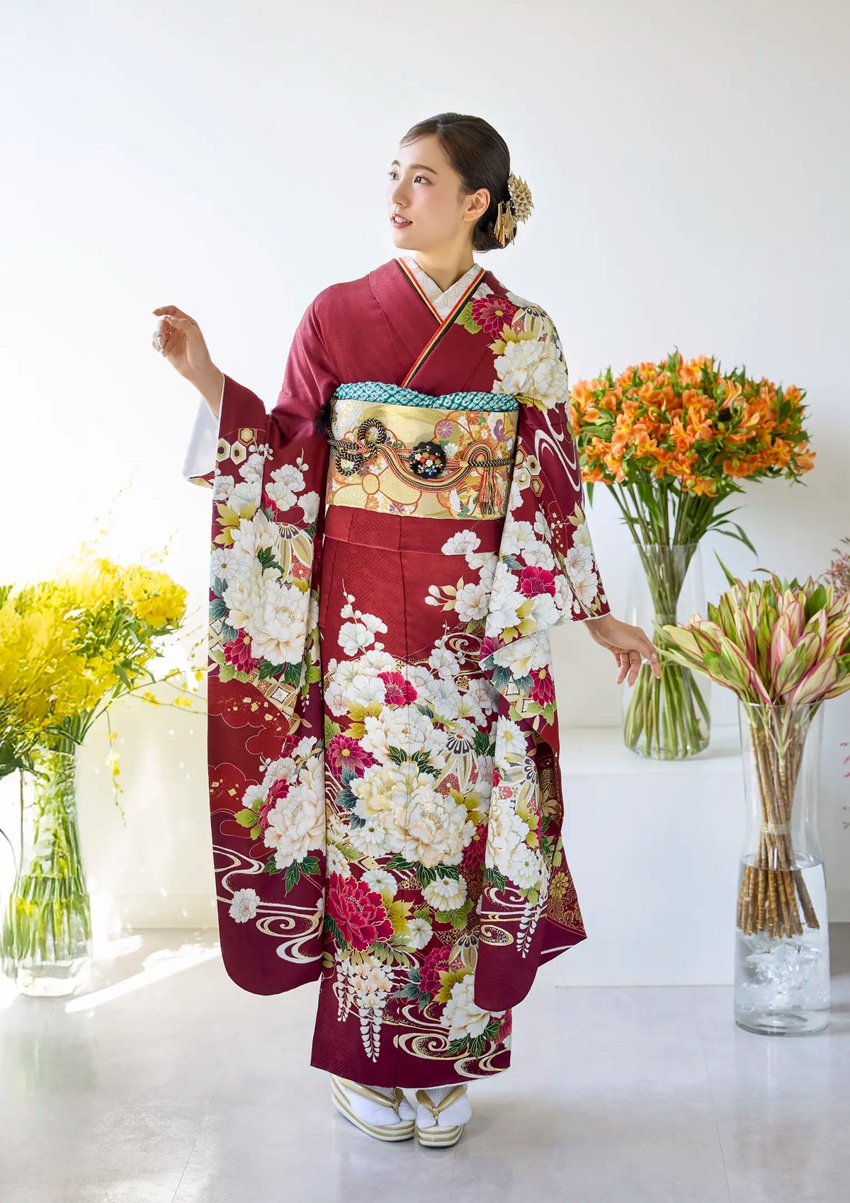 【振袖ネットレンタル:赤と白牡丹】和の雰囲気でお淑やかに/KH-463