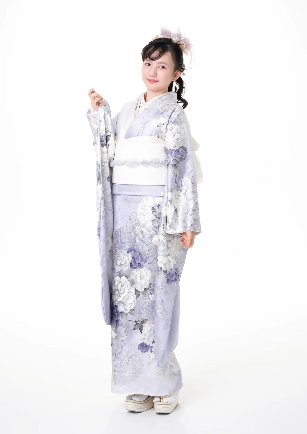 【振袖ネットレンタル:白とふんわり牡丹】印象派の雰囲気/KH-445