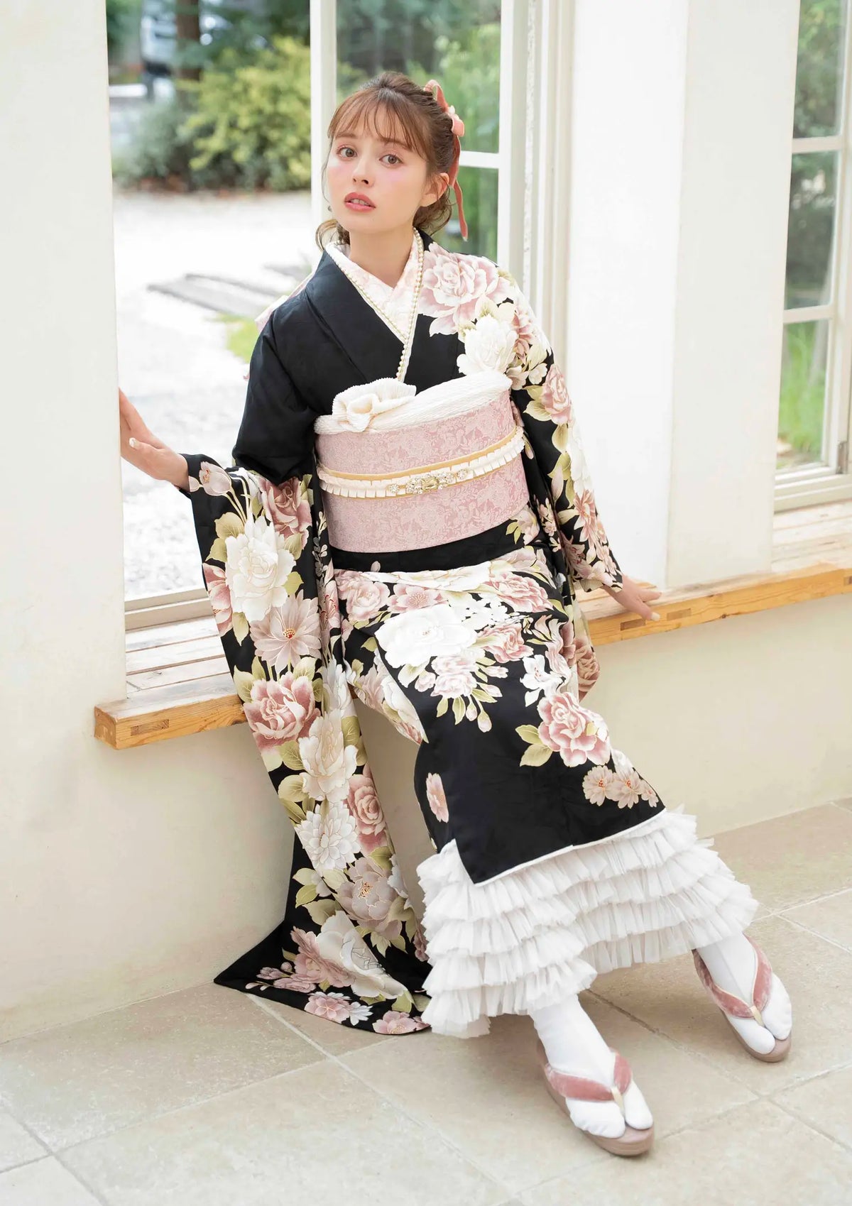 【振袖ネットレンタル:ロマンティックガーリー】ローズシュシュ×ピンクホワイト/C-063