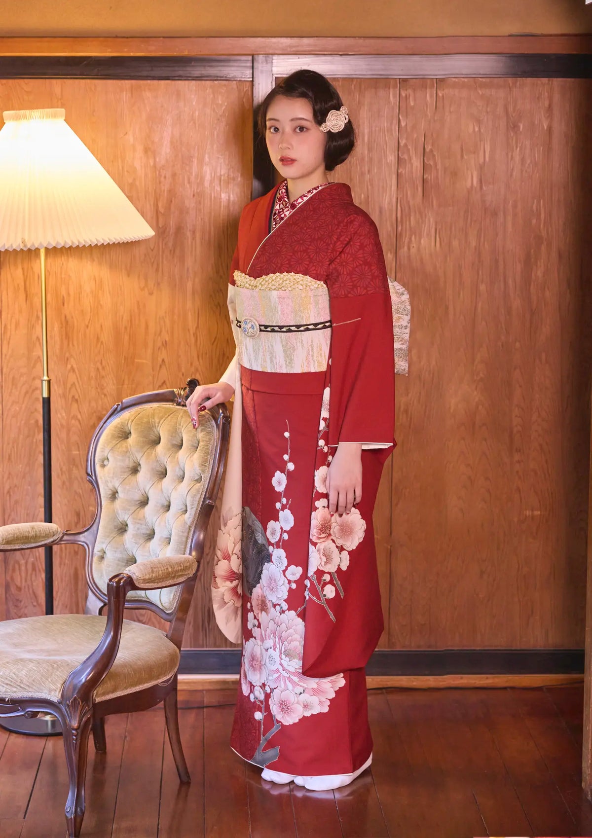 【振袖ネットレンタル:大正浪漫の香り】椿や梅を和洋折衷に魅せる/KH-609