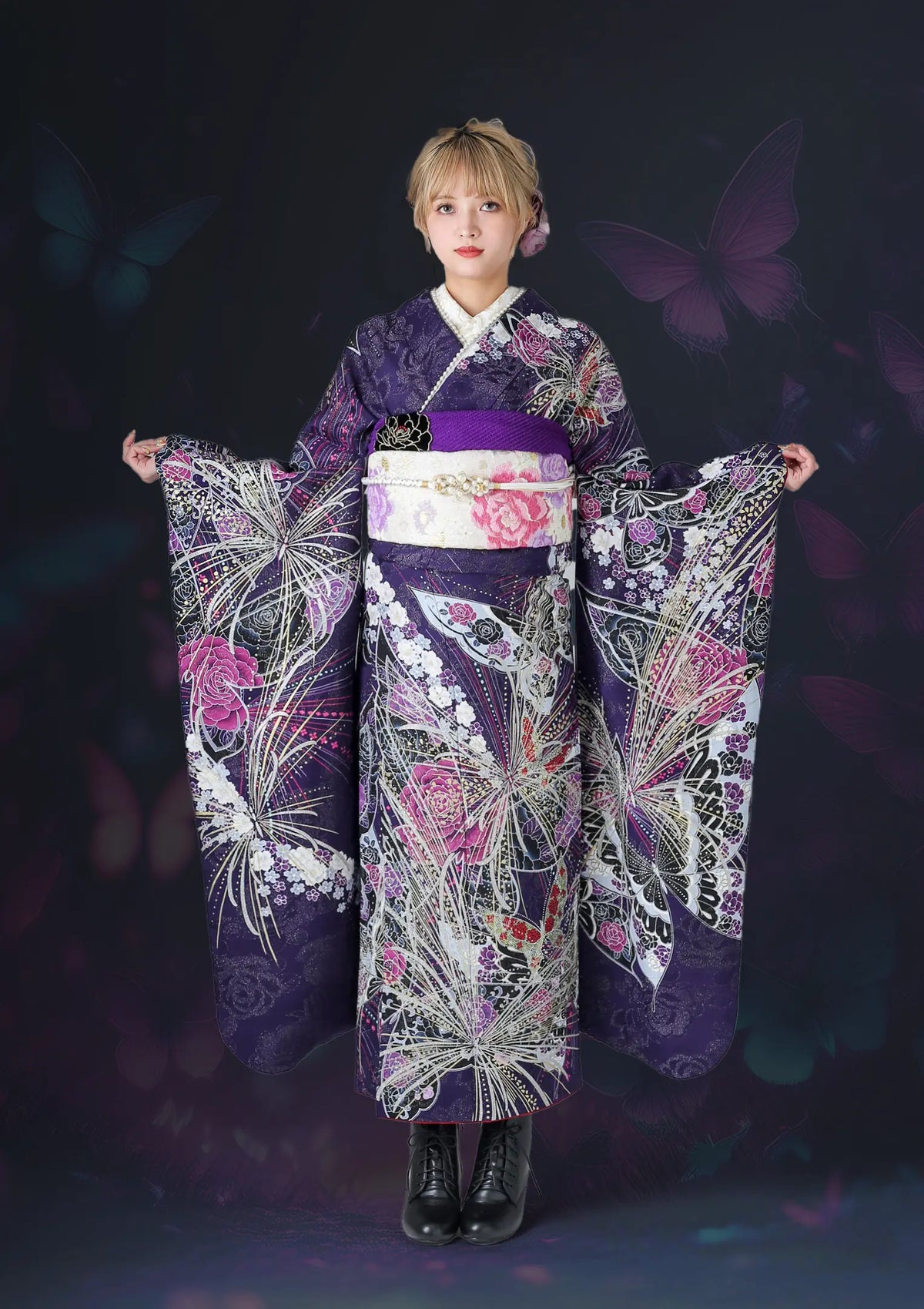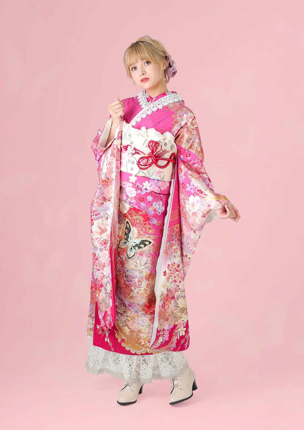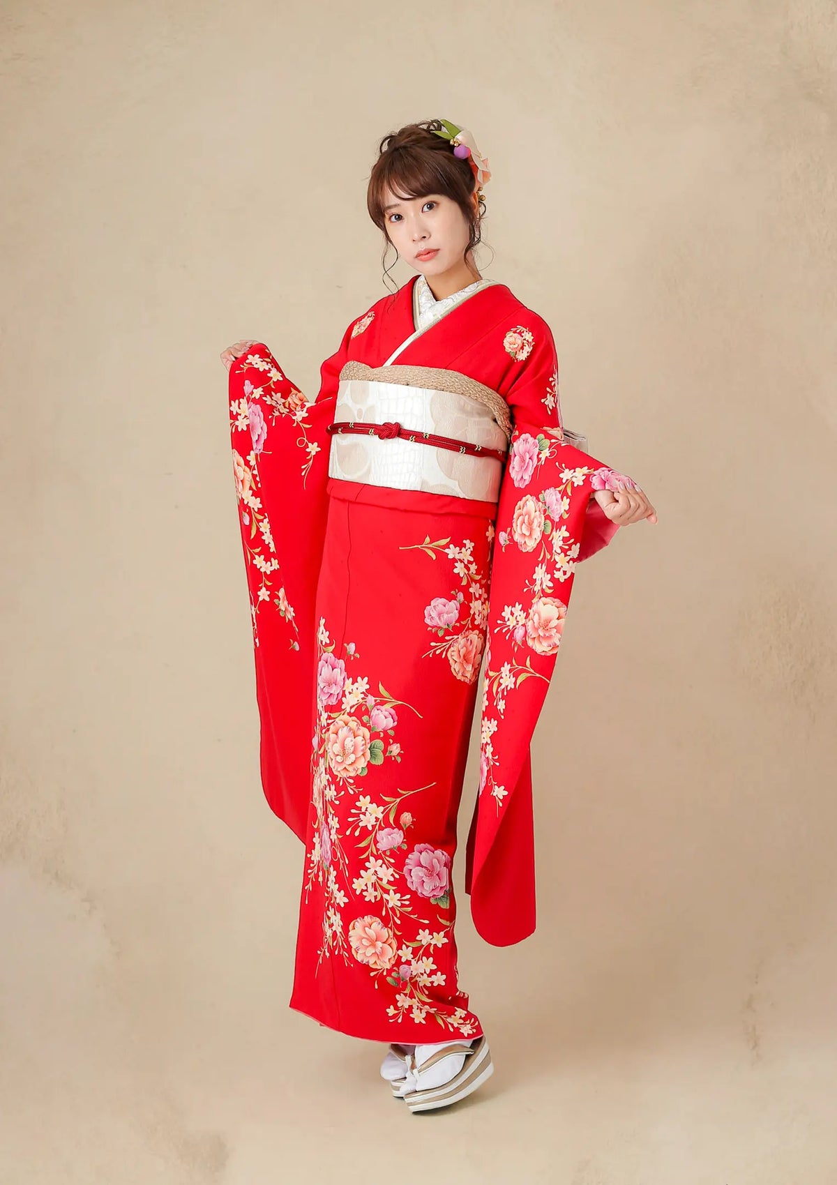 1.振袖 2.帯 3.長襦袢 4.半衿 5.重衿 6.帯締め 7.帯揚げ 8.草履 9.バッグ 10.ショール 11.肌着 12.足袋 13.腰紐×5 14.衿芯×2 15.マジックベルト×2 16.コーリンベルト 17.帯板×2 18.帯枕 19.トリプル